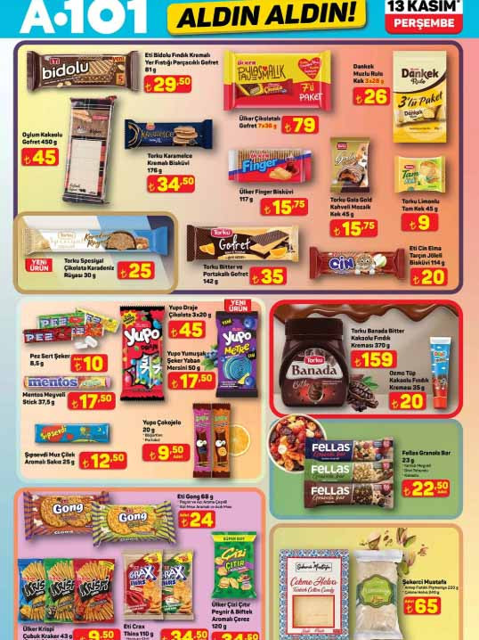 A101 aktüel afişi ile yepyeni katalog ürünleri satışa sunuluyor. 13 Kasım 2025 A101 Aldın Aldın indirim broşürü, spor aletleri, para sayma makinesi ve diğer elektronik gereçlerle dikkat çekiyor. A101 indirim broşürü içerisinde bu hafta; 43″ FHD Android LED TV 8.499 TL, direnç lastikli egzersiz aleti 1.699 TL, tüy alma cihazı 1.299 TL, yün-kazak temizleme cihazı 219 TL, üç tekerlekli elektrikli moped 74.990 TL, doğrayıcı 999 TL, standlı blender 1.199 TL, eliptik kondüsyon bisikleti 6.999 TL, 28 cm duvar saati 179 TL, döküm tost makinesi 599 TL, pasta tabağı adet 89,50 TL, Inox bulaşık makinesi 12.999 TL ile raflara gelmeye hazırlanıyor. A101 bülten ürünleri Perşembe günü satışa hazır olarak raflarda müşterileri bekleyecek. Peki A101 afişi bu hafta ürünleri neler? İşte 13 Kasım 2025 Perşembe A101 Aldın Aldın kataloğu tamamı…