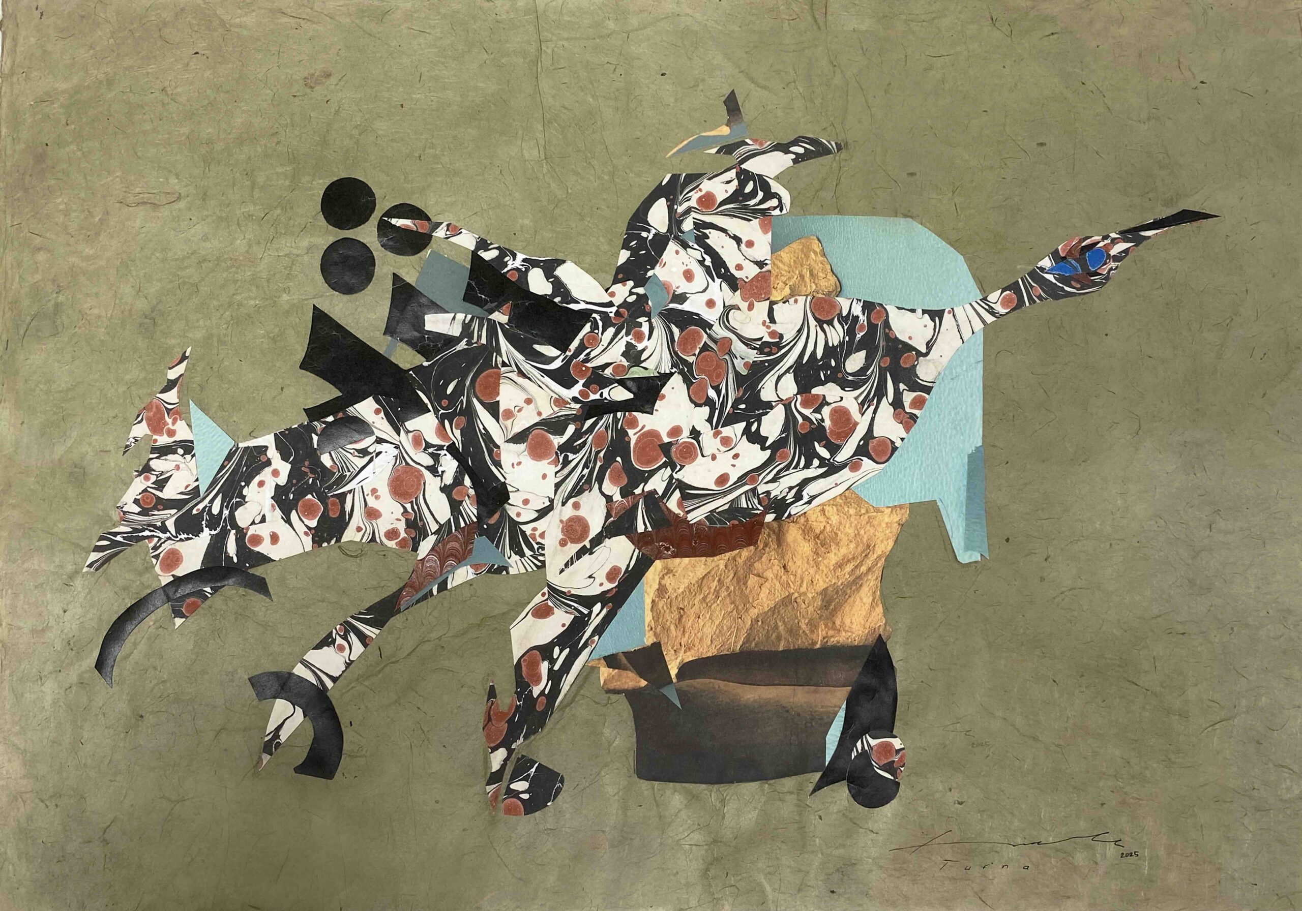 Şule Güzeller, Turna, 35×50 cm, el yapımı kâğıt üzerine karışık teknik.