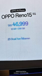 • OPPO Reno 15 5G (12 GB + 256 GB): 46.999 TL