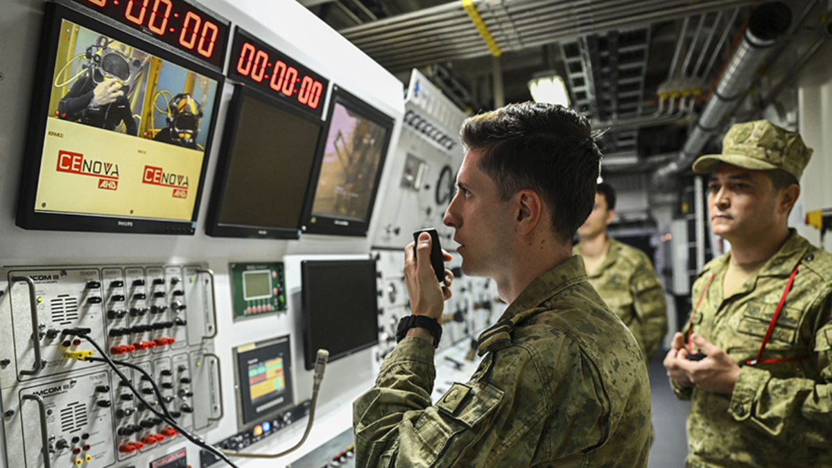 TCG Alemdar’ın imkânlarına ilişkin bilgi veren Gemi Komutanı Yarbay Ümit Arslan, “Gemimiz, üzerinde konuşlu 1.000 ve 3.000 metrelik uzaktan kumandalı su altı sistemleriyle her türlü kurtarma faaliyetini desteklemektedir” dedi.